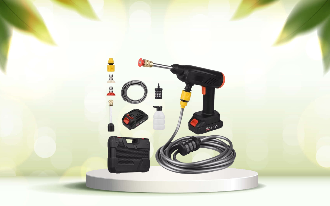 La pistola idropulitrice elettrica viene fornita con tutti gli accessori indispensabili per essere subito operativa: tubo da 5 metri, batteria e caricabatterie, serbatoio per sapone, filtro anti-impurità, ugello 6-in-1 e canna dell’acqua. Riceverai un prodotto pronto all’uso, senza bisogno di acquistare pezzi aggiuntivi.